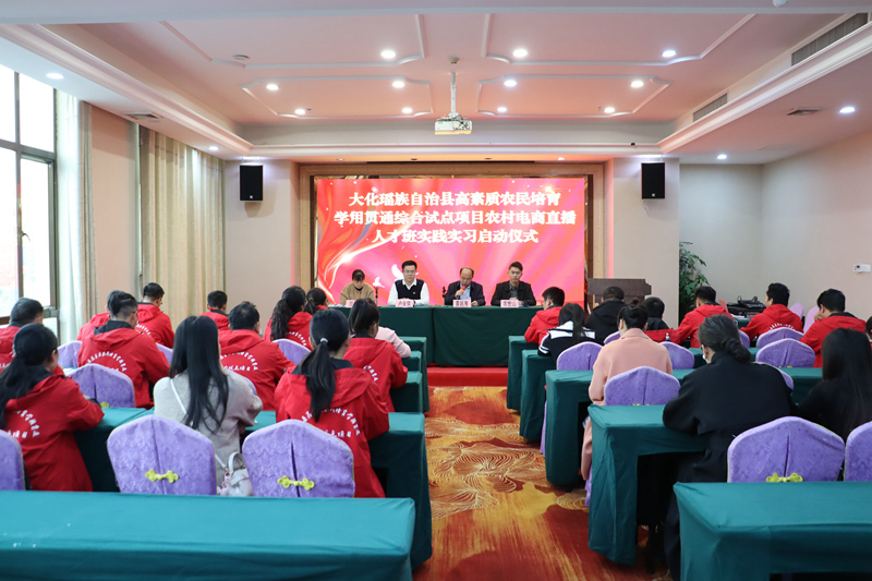 近日,广西大化瑶族自治县高素质农民培育学用贯通综合试点项目——农村电商直播人才班实践实习启动仪式在贵港市举行。来自该县各乡镇的第一批30多名实习学员齐聚一堂,开启沉浸式岗位实践实习,标志着大化县在深化高素质农民培育、推动“农业+电商”融...